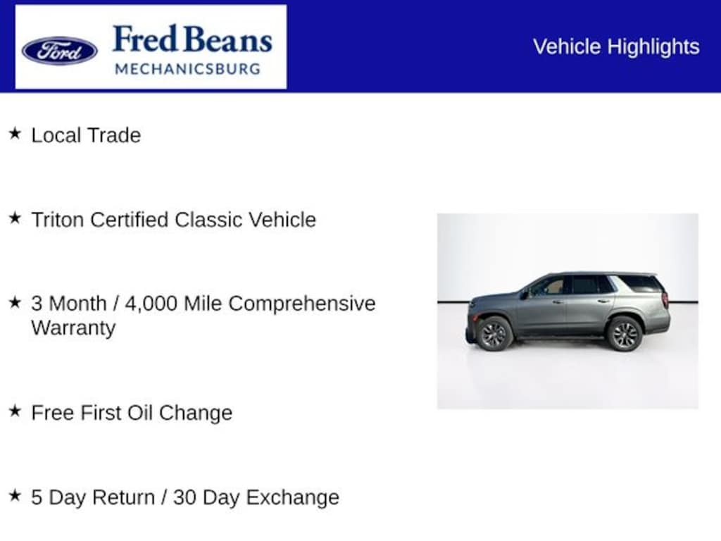 As a Triton Certified Classic Vehicle, this 2021 Chevrolet Tahoe LT has undergone a rigorous 127-point inspection and comes with a 3-month/4,000-mile comprehensive warranty, giving you added peace of mind. Plus, with our exclusive Auto Rewards Program, you'll enjoy valuable benefits like free oil changes and discounts at local merchants.