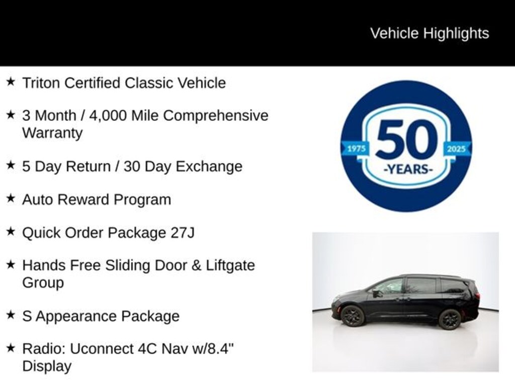 Recent Arrival! 2019 Chrysler Pacifica Touring L Plus 3.6L V6 24V VVT 9-Speed 948TE Automatic FWD 4D Passenger Van Brilliant Black Crystal Pearlcoat Triton Certified Classic Vehicle, 3 Month / 4,000 Mile Comprehensive Warranty, 5 Day Return / 30 Day Exchange, Auto Reward Program, AM/FM radio: SiriusXM, Apple CarPlay/Android Auto, Auto-dimming Rear-View mirror, Automatic temperature control, Black Badging, Black Chrysler Grille Wing Badge, Black Day Light Opening Moldings, Black Spear Rear Fascia Applique, Black Stow N Place Roof Rack, Blind Spot & Cross Path Detection, Body Color Door Handles, Bridgestone Brand Tires, Front dual zone A/C, Fully automatic headlights, Garage door transmitter, Hands Free Power Liftgate, Hands Free Sliding Door & Liftgate Group, Hands Free Sliding Doors, Heated door mirrors, Heated front seats, Heated rear seats, Heated steering wheel, ParkView Rear Back-Up Camera, Perforated Leather Trim Bucket Seats, Power door mirrors, Power driver seat, Power Liftgate, Power passenger seat, Premium Fascia Upper/Lower Grille w/Black Surround, Quick Order Package 27J, Radio: Uconnect 4C Nav w/8.4" Display, Rain sensing wipers, Remote keyless entry, S Appearance Package, Steering wheel mounted audio controls, Wheels: 18" x 7.5" Aluminum Black Noise.