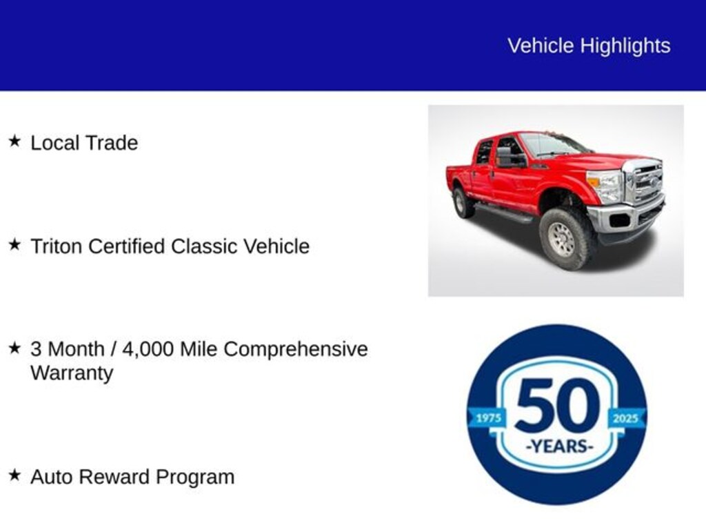 As a Triton Certified Classic Vehicle, this Ford F-250SD has undergone a rigorous 127-point inspection and comes with a comprehensive 3-month/4,000-mile warranty for added peace of mind. Our exclusive Auto Rewards Program also provides valuable benefits, including free Pennsylvania state safety inspections and discounts at local merchants.