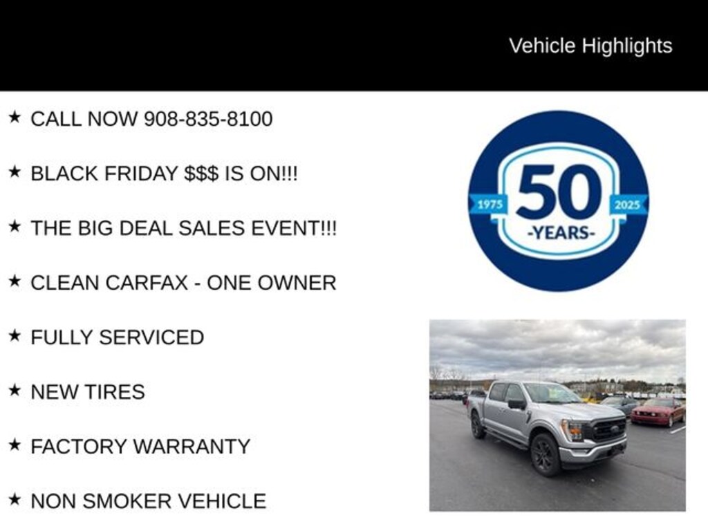 CALL NOW 908-835-8100, BLACK FRIDAY $$$ IS ON!!!, THE BIG DEAL SALES EVENT!!!, CLEAN CARFAX - ONE OWNER, FULLY SERVICED, NEW TIRES, FACTORY WARRANTY, NON SMOKER VEHICLE, NAVIGATION, LOW MILES, HEATED SEATS, CALL NOW!!! 908-835-8100, Free First Oil Change, 5 Day Return / 30 Day Exchange, Auto Reward Program, CALL NOW - 908-835-8100, 4WD, 360 Degree Camera, Class IV Trailer Hitch Receiver, Connected Built-In Navigation, Electronic Locking w/3.55 Axle Ratio, Evasive Steering Assist, Extended Range 36 Gallon Fuel Tank, Exterior Parking Camera Rear, Ford Co-Pilot360 Assist 2.0, Front fog lights, FX4 Off-Road Package, Hill Descent Control, Integrated Trailer Brake Controller, Intelligent Adaptive Cruise Control w/Stop & Go, Intersection Assist, Pro Trailer Backup Assist, Trailer Tow Package. Recent Arrival! 2021 Ford F-150 XLT 3.5L V6 EcoBoost 10-Speed Automatic 4WD 4D SuperCrew Silver
