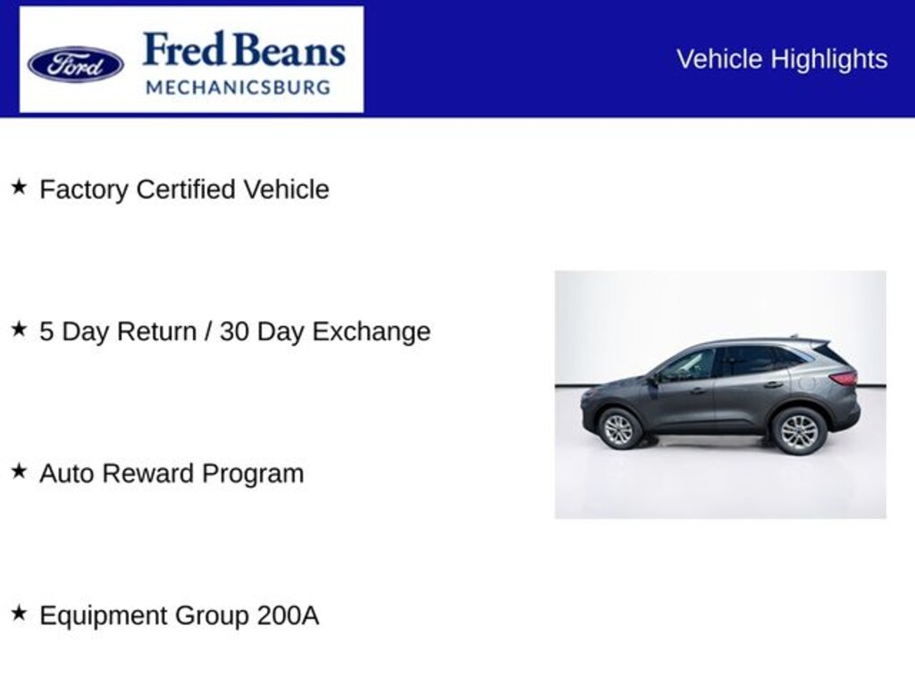 2022 Ford Escape SE 1.5L EcoBoost 8-Speed Automatic AWD 4D Sport Utility Carbonized Gray Metallic Factory Certified Vehicle, 5 Day Return / 30 Day Exchange, Auto Reward Program, AWD, Air Conditioning, AM/FM radio: SiriusXM, Delay-off headlights, Equipment Group 200A, Speed control, Steering wheel mounted audio controls, SYNC 3 Communications & Entertainment System, Wheels: 17" Shadow Silver-Painted Aluminum.