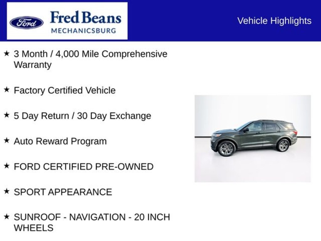 For better peace of mind, this Ford Explorer XLT is backed by a comprehensive certification program that includes: