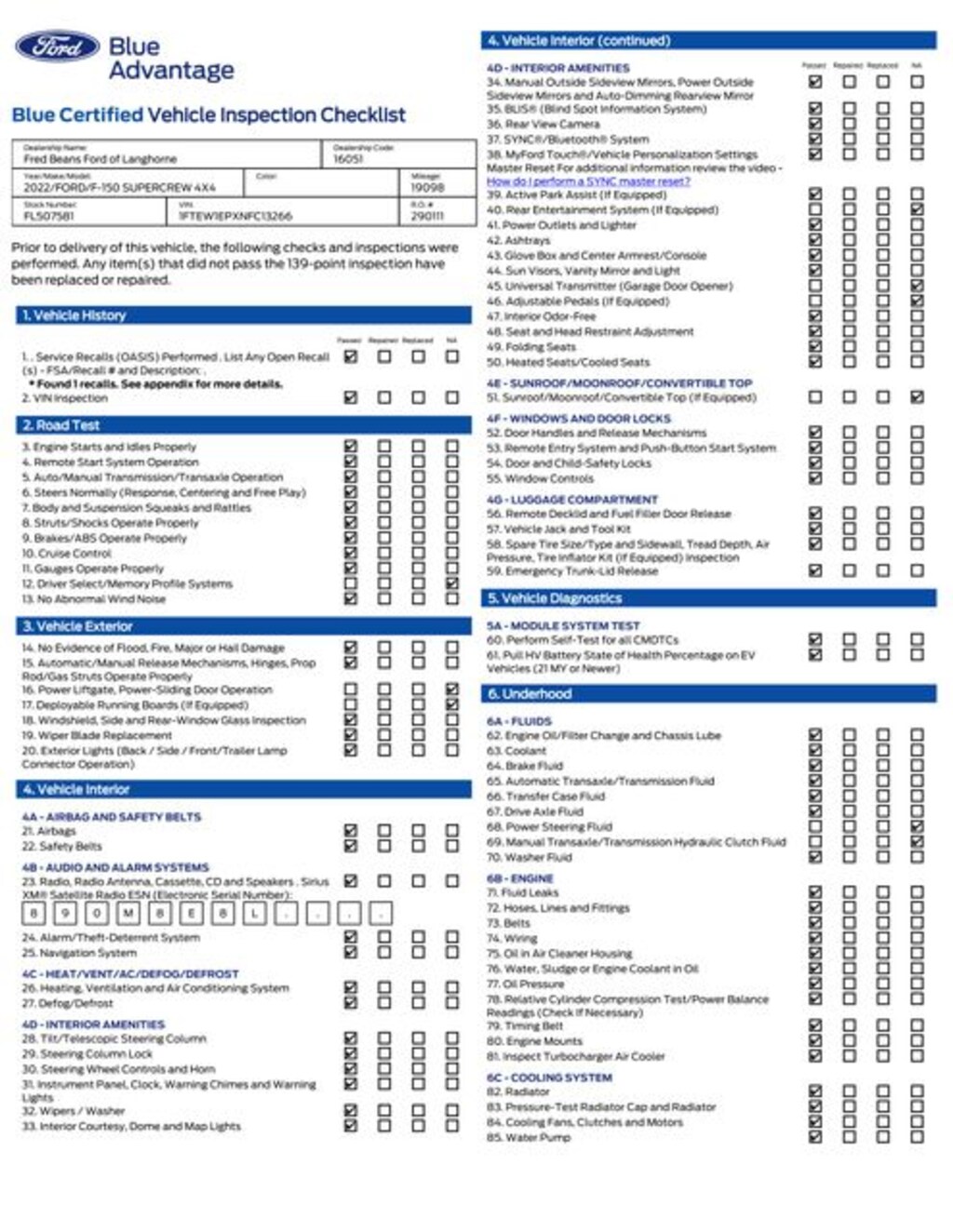 139 Point Inspection Roadside Assistance Warranty Deductible: $100 Transferable Warranty Vehicle History Limited Warranty: 3 Month/4,000 Mile (whichever comes first) after new car warranty expires or from certified purchase date and 11,000 FordPass Rewards Points to use toward first maintenance visit