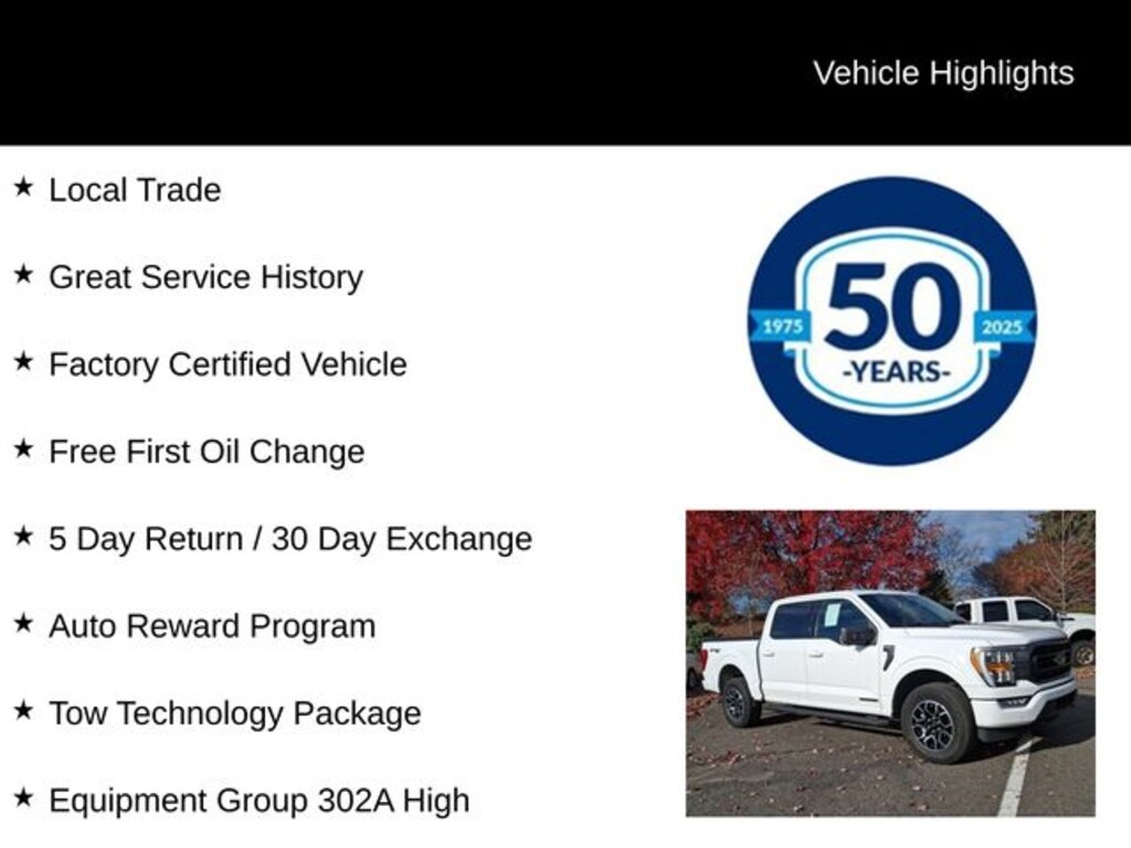 Recent Arrival! 2022 Ford F-150 XLT 3.5L PowerBoost Full-Hybrid V6 10-Speed Automatic 4D SuperCrew Oxford White Local Trade, Great Service History, Factory Certified Vehicle, Free First Oil Change, 5 Day Return / 30 Day Exchange, Auto Reward Program, F-150 XLT, 4D SuperCrew, 3.5L PowerBoost Full-Hybrid V6, 10-Speed Automatic, 4WD, Oxford White, Black w/Unique Sport Cloth 40/Console/40 Front-Seats, 10-Way Power Driver & Passenger Seats, 360 Degree Camera, 8" Productivity Screen in Instrument Cluster, Accent-Color Step Bars, Bed Utility Package, Black 2-Bar Style Grille w/Black Surround/Accents, Body-Color Door & Tailgate Handles, Body-Color Front & Rear Bumpers, Box Side Decals, BoxLink, Class IV Trailer Hitch Receiver, Connected Built-In Navigation (DISC), Dual Zone Electronic Automatic Temperature Control, Equipment Group 302A High, Evasive Steering Assist, Ford Co-Pilot360 Assist 2.0 (DISC), Heated Front Seats, Integrated Trailer Brake Controller, Intelligent Access w/Push Button Start, Intelligent Adaptive Cruise Control w/Stop & Go, Intersection Assist, Leather-Wrapped Steering Wheel, LED Box Lighting, LED Reflector Headlamps, LED Sideview Mirror Spotlights, Onboard 400W Outlet, Power Glass Heated Sideview Mirrors, Pro Trailer Backup Assist, Rear Under-Seat Storage, Remote Start System w/Remote Tailgate Release, SYNC 4 w/Enhanced Voice Recognition, Tailgate Step w/Tailgate Work Surface, Tow Technology Package, Unique Sport Cloth 40/Console/40 Front-Seats, Wheels: 18" 6-Spoke Machined Aluminum, XLT Sport Appearance Package, Zone Lighting.