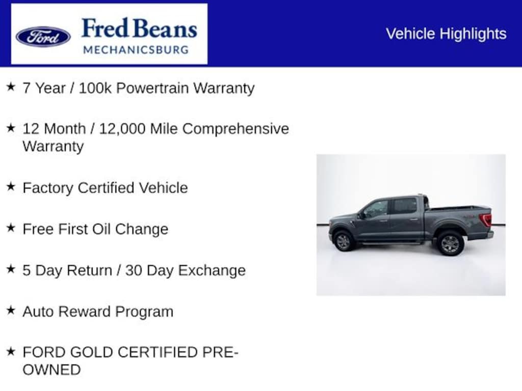 2022 Ford F-150 XLT 2.7L V6 EcoBoost 10-Speed Automatic 4WD 4D SuperCrew Carbonized Gray Metallic 7 Year / 100k Powertrain Warranty, 12 Month / 12,000 Mile Comprehensive Warranty, Factory Certified Vehicle, Free First Oil Change, 5 Day Return / 30 Day Exchange, Auto Reward Program, Ford Certified, 4WD, 10-Way Power Driver & Passenger Seats, 2-Bar Style Grille w/Chrome 2 Minor Bars, 3.55 Axle Ratio, 3.73 Axle Ratio, 4-Wheel Disc Brakes, 6 Speakers, 8" Productivity Screen in Instrument Cluster, ABS brakes, Air Conditioning, Alloy wheels, AM/FM radio, Auto High-beam Headlights, Auto Start-Stop Removal, Auto-Dimming Rear-View Mirror, Bed Utility Package, BoxLink, Brake assist, Bright Polished Step Bars, Bumpers: chrome, Chrome Door & Tailgate Handles w/Body-Color Bezel, Chrome Single-Tip Exhaust, Class IV Trailer Hitch Receiver, Cloth 40/20/40 Front Seat, Compass, Connected Built-In Navigation (DISC), Delay-off headlights, Driver door bin, Driver vanity mirror, Dual front impact airbags, Dual front side impact airbags, Dual Zone Electronic Automatic Temperature Control, Electronic Stability Control, Emergency communication system: SYNC 4 911 Assist, Equipment Group 302A High, Exterior Parking Camera Rear, Front anti-roll bar, Front Center Armrest w/Storage, Front fog lights, Front reading lights, Front wheel independent suspension, Fully automatic headlights, GVWR: 6,470 lbs Payload Package, Heated door mirrors, Heated Front Seats, Illuminated entry, Integrated Trailer Brake Controller, Intelligent Access w/Push Button Start, Leather-Wrapped Steering Wheel, LED Box Lighting, LED Reflector Headlamps, LED Sideview Mirror Spotlights, Low tire pressure warning, Occupant sensing airbag, Onboard 400W Outlet, Outside temperature display, Overhead airbag, Overhead console, Panic alarm, Passenger door bin, Passenger vanity mirror, Power door mirrors, Power Glass Heated Sideview Mirrors, Power steering, Power windows, Power-Sliding Rear Window, Radio data system, Radio: AM/FM SiriusXM w/360L, Radio: AM/FM Stereo w/6 Speakers, Rear reading lights, Rear step bumper, Rear Under-Seat Storage, Rear window defroster, Remote keyless entry, Remote Start System, SecuriCode Drivers Side Keyless-Entry Keypad, Security system, Speed control, Speed-sensing steering, Split folding rear seat, Steering wheel mounted audio controls, SYNC 4, SYNC 4 w/Enhanced Voice Recognition, Tachometer, Tailgate Step w/Tailgate Work Surface, Telescoping steering wheel, Tilt steering wheel, Traction control, Trip computer, Variably intermittent wipers, Voltmeter, Wheels: 17" Silver Painted Aluminum, Wheels: 18" Chrome-Like PVD, XLT Chrome Appearance Package, Zone Lighting, FORD GOLD CERTIFIED PRE-OWNED, 4WD.