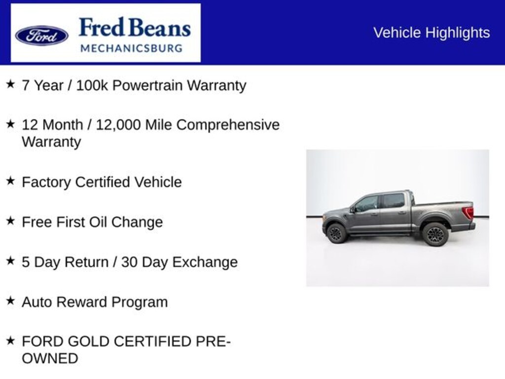 2022 Ford F-150 XLT 2.7L V6 EcoBoost 10-Speed Automatic 4WD 4D SuperCrew Carbonized Gray Metallic 7 Year / 100k Powertrain Warranty, 12 Month / 12,000 Mile Comprehensive Warranty, Factory Certified Vehicle, Free First Oil Change, 5 Day Return / 30 Day Exchange, Auto Reward Program, Ford Certified, 4WD, Navigation System, 10-Way Power Driver & Passenger Seats, 2-Bar Style Grille w/Chrome 2 Minor Bars, 3.55 Axle Ratio, 3.73 Axle Ratio, 4-Wheel Disc Brakes, 6 Speakers, 8" Productivity Screen in Instrument Cluster, ABS brakes, Accent-Color Step Bars, Air Conditioning, Alloy wheels, AM/FM radio, Auto High-beam Headlights, Auto Start-Stop Removal, Auto-Dimming Rear-View Mirror, Bed Utility Package, Black 2-Bar Style Grille w/Black Surround/Accents, Body-Color Door & Tailgate Handles, Body-Color Front & Rear Bumpers, Box Side Decals, BoxLink, Brake assist, Bright Polished Step Bars, Bumpers: chrome, Chrome Door & Tailgate Handles w/Body-Color Bezel, Chrome Single-Tip Exhaust, Class IV Trailer Hitch Receiver, Cloth 40/20/40 Front Seat, Compass, Connected Navigation & SiriusXM w/360L Removal, Delay-off headlights, Driver door bin, Driver vanity mirror, Dual front impact airbags, Dual front side impact airbags, Dual Zone Electronic Automatic Temperature Control, Electronic Stability Control, Emergency communication system: SYNC 4 911 Assist, Equipment Group 302A High, Exterior Parking Camera Rear, Front anti-roll bar, Front Center Armrest w/Storage, Front fog lights, Front reading lights, Front wheel independent suspension, Fully automatic headlights, GVWR: 6,470 lbs Payload Package, Heated door mirrors, Heated Front Seats, Illuminated entry, Intelligent Access w/Push Button Start, Leather-Wrapped Steering Wheel, LED Box Lighting, LED Reflector Headlamps, LED Sideview Mirror Spotlights, Low tire pressure warning, Occupant sensing airbag, Onboard 400W Outlet, Outside temperature display, Overhead airbag, Overhead console, Panic alarm, Passenger door bin, Passenger vanity mirror, Power door mirrors, Power Glass Heated Sideview Mirrors, Power steering, Power windows, Power-Sliding Rear Window, Radio data system, Radio: AM/FM SiriusXM w/360L, Radio: AM/FM Stereo w/6 Speakers, Rear reading lights, Rear step bumper, Rear Under-Seat Storage, Rear window defroster, Remote keyless entry, Remote Start System, SecuriCode Drivers Side Keyless-Entry Keypad, Security system, Speed control, Speed-sensing steering, Split folding rear seat, Steering wheel mounted audio controls, SYNC 4, SYNC 4 w/Enhanced Voice Recognition, Tachometer, Tailgate Step w/Tailgate Work Surface, Telescoping steering wheel, Tilt steering wheel, Traction control, Tray Style Floor Liner (47W), Trip computer, Unique Sport Cloth 40/Console/40 Front-Seats, Variably intermittent wipers, Voltmeter, Wheels: 17" Silver Painted Aluminum, Wheels: 18" 6-Spoke Machined Aluminum, Wheels: 18" Chrome-Like PVD, XLT Chrome Appearance Package, XLT Sport Appearance Package, Zone Lighting, FORD GOLD CERTIFIED PRE-OWNED, 4WD, Navigation System.
