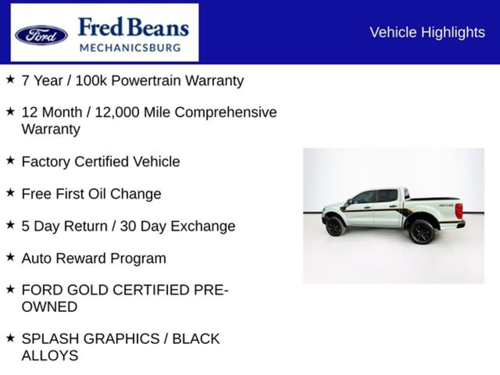 2022 Ford Ranger XLT EcoBoost 2.3L I4 GTDi DOHC Turbocharged VCT 10-Speed Automatic 4WD 4D Crew Cab Cactus Gray 7 Year / 100k Powertrain Warranty, 12 Month / 12,000 Mile Comprehensive Warranty, Factory Certified Vehicle, Free First Oil Change, 5 Day Return / 30 Day Exchange, Auto Reward Program, Ford Certified, 4WD, 110V AC Power Outlet, 3.73 Axle Ratio, 4-Wheel Disc Brakes, 6 Speakers, ABS brakes, Air Conditioning, Alloy wheels, AM/FM radio: SiriusXM, AM/FM Stereo, Auto High-beam Headlights, Auto Start-Stop Removal, Auto Start-Stop Technology, Auto-Dimming Rear-View Mirror, Automatic temperature control, Black Fender Vent, Black Mesh Grille w/Magnetic Painted Surround, Black Painted Front & Rear Bumpers, Black Wheel-Lip Molding, Blk Mesh Grille w/Black Painted Surrounds/Black Bars, Brake assist, Bumpers: body-color, Compass, Delay-off headlights, Driver door bin, Driver vanity mirror, Dual front impact airbags, Dual front side impact airbags, Electronic Stability Control, Emergency communication system: SYNC 3 911 Assist, Equipment Group 301A Mid, Exterior Parking Camera Rear, Front anti-roll bar, Front Bucket Seats, Front Center Armrest, Front Cloth Bucket Seats w/Orange Accent Stitching, Front dual zone A/C, Front fog lights, Front Premium Cloth Bucket Seats, Front reading lights, Front wheel independent suspension, Fully automatic headlights, Illuminated entry, Leather-Wrapped Shifter, Leather-Wrapped Steering Wheel, Low tire pressure warning, Magnetic Painted Fender Vent Surround, Magnetic Painted Front & Rear Bumper, Occupant sensing airbag, Outside temperature display, Overhead airbag, Overhead console, Panic alarm, Passenger door bin, Passenger vanity mirror, Power door mirrors, Power steering, Power windows, Rear reading lights, Rear seat center armrest, Rear step bumper, Rear window defroster, Remote keyless entry, Remote Start, Reverse Sensing System, Security system, SiriusXM Satellite Radio, Speed control, Speed-sensing steering, Splash Package, Splash Package Body Side & Tailgate Graphics, Sport Appearance Package, Sport Box Decal, Steering wheel mounted audio controls, SYNC 3, SYNC 3/Apple CarPlay/Android Auto, Telescoping steering wheel, Tilt steering wheel, Traction control, Trip computer, Variably intermittent wipers, Voltmeter, Wheels: 17" Magnetic Painted Aluminum Sport, Wheels: 17" Silver-Painted Aluminum, Wheels: 18" Matte Black, FORD GOLD CERTIFIED PRE-OWNED, SPLASH GRAPHICS / BLACK ALLOYS, 4WD.