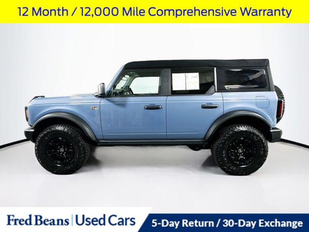 2023 Ford Bronco Wildtrak 2.7L EcoBoost V6 10-Speed Automatic 4WD 4D Sport Utility Azure Gray Metallic Tri-Coat Ford Gold Certified, 7 Year / 100k Powertrain Warranty, 12 Month / 12,000 Mile Comprehensive Warranty, AM/FM radio: SiriusXM with 360L, Automatic temperature control, Equipment Group 352A Mid Package, Exterior Parking Camera Rear, Front dual zone A/C, Heated door mirrors, Heated Leather-Trimmed/Vinyl Bucket Seats, Navigation system: Connected Navigation, Power door mirrors, Power windows, Remote keyless entry, Speed control, SYNC 4, Wheels: 17" Black High Gloss-Painted Aluminum.