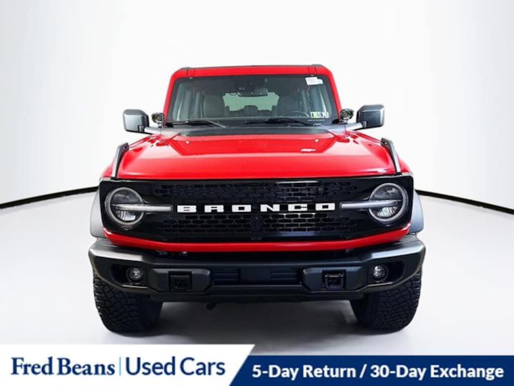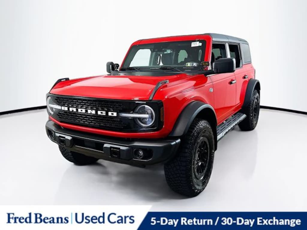 CLEAN CARFAX - ONE OWNER, FACTORY WARRANTY, NON SMOKER VEHICLE, NAVIGATION, LOW MILES, HEATED SEATS, 7 Year / 100k Powertrain Warranty, 12 Month / 12,000 Mile Comprehensive Warranty, Free First Oil Change, 5 Day Return / 30 Day Exchange, Auto Reward Program, CALL NOW!!! 908-835-8100, Co-Pilot360, Blindspot, Hardtop, Twin Turbocharged 2.7L Ecoboost V6 Engine, 4.7 Axle Ratio, ABS brakes, BLIS Blind Spot Information System, Brake assist, Electronic Stability Control, Equipment Group 352A Mid Package, Heated door mirrors, Remote keyless entry, Remote Start System, Traction control. Recent Arrival! 2023 Ford Bronco Wildtrak 2.7L EcoBoost V6 10-Speed Automatic 4WD 4D Sport Utility Race Red