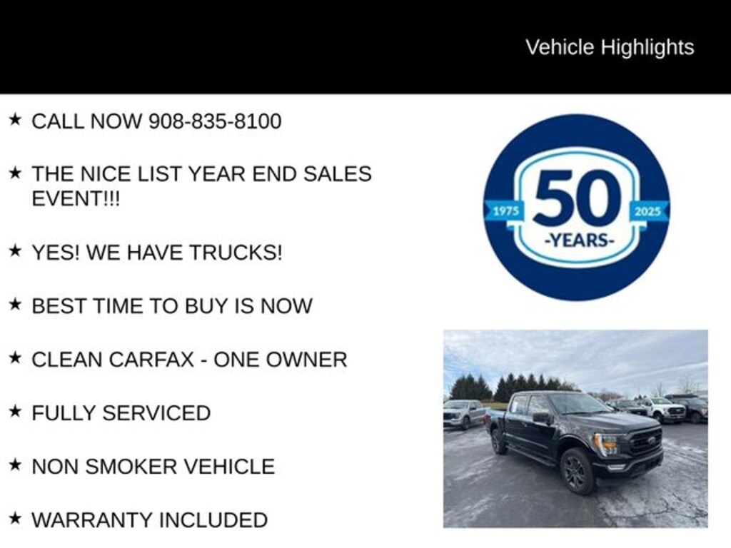 CALL NOW 908-835-8100, THE NICE LIST YEAR END SALES EVENT!!!, YES! WE HAVE TRUCKS!, BEST TIME TO BUY IS NOW, CLEAN CARFAX - ONE OWNER, FULLY SERVICED, NON SMOKER VEHICLE, WARRANTY INCLUDED, HEATED SEATS, CALL NOW!!! 908-835-8100, Free First Oil Change, 5 Day Return / 30 Day Exchange, Auto Reward Program, 4WD. Recent Arrival! 2023 Ford F-150 XLT 2.7L V6 EcoBoost 10-Speed Automatic 4WD 4D SuperCrew Agate Black Metallic