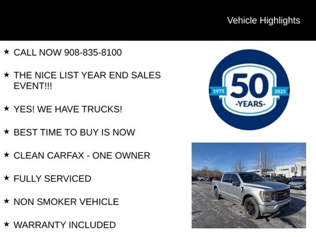CALL NOW 908-835-8100, THE NICE LIST YEAR END SALES EVENT!!!, YES! WE HAVE TRUCKS!, BEST TIME TO BUY IS NOW, CLEAN CARFAX - ONE OWNER, FULLY SERVICED, NON SMOKER VEHICLE, WARRANTY INCLUDED, LOW MILES, HEATED SEATS, CALL NOW!!! 908-835-8100, Factory Certified Vehicle, Free First Oil Change, 5 Day Return / 30 Day Exchange, Auto Reward Program, CALL NOW - 908-835-8100, 4WD. Recent Arrival! 2023 Ford F-150 XLT 2.7L V6 EcoBoost 10-Speed Automatic 4WD 4D SuperCrew Iconic Silver Metallic