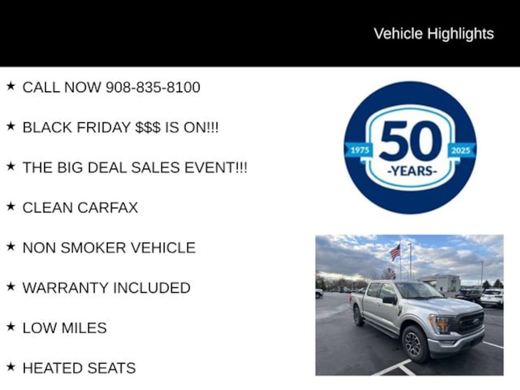 Don't miss your chance to own this impressive 2023 Ford F-150 XLT. Call us now at 908-835-8100 to schedule a test drive and experience the power and capability of this exceptional truck for yourself.