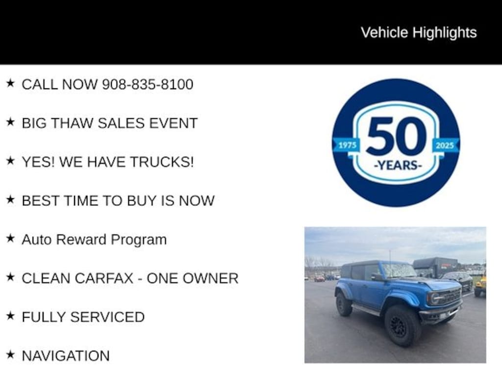 The Bronco Raptor's impressive capabilities are complemented by a host of premium features that elevate your driving experience. Enjoy the convenience of the SYNC 4 infotainment system, the clarity of the B&O sound system, and the comfort of heated seats and a heated steering wheel. With a spacious, well-appointed interior and a versatile cargo area, this Bronco Raptor is the ultimate companion for your adventures.