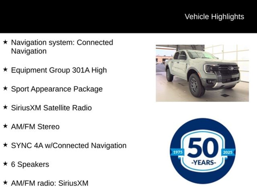 4WD, 12" Display in Center Stack, 3.73 Axle Ratio, 6 Speakers, Air Conditioning, AM/FM radio: SiriusXM, AM/FM Stereo, Auto High-beam Headlights, Delay-off headlights, Dual-Zone Electronic Climate Control (DEATC), Equipment Group 301A High, Front fog lights, Fully automatic headlights, Gray Painted Center Bar & Grille Surround, Gray Painted Wheel Lip Molding, Leather Shift Knob, Navigation system: Connected Navigation, Outside temperature display, Overhead console, Passenger vanity mirror, Power door mirrors, Power steering, Power windows, Power-Sliding Rear Window, Premium Cloth Front Heated Bucket Seats, Rear step bumper, Rear window defroster, Remote keyless entry, SiriusXM Satellite Radio, Speed control, Sport Appearance Package, Sport Box Decal, Steering wheel mounted audio controls, SYNC 4A w/Connected Navigation.