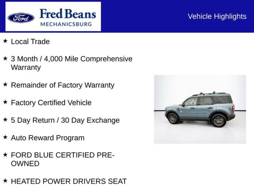 The Ford Bronco Sport Big Bend comes with a comprehensive warranty and an impressive list of features, including: