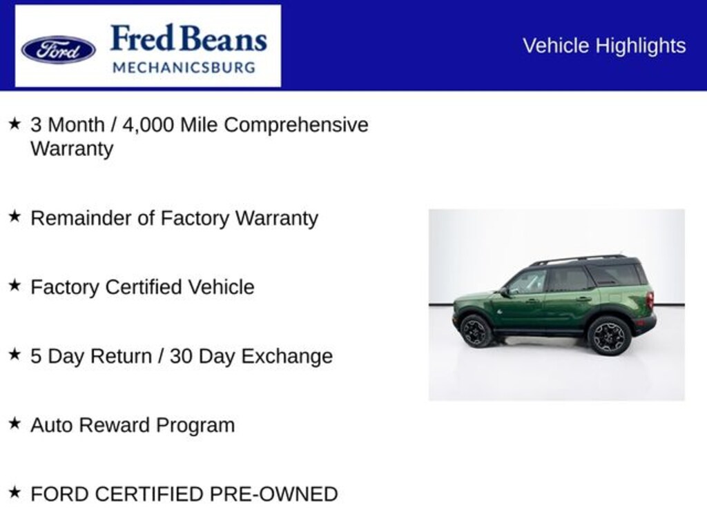 Genesis Certified Pre-Owned Overview 2025 FordBronco Sport Outer Banks