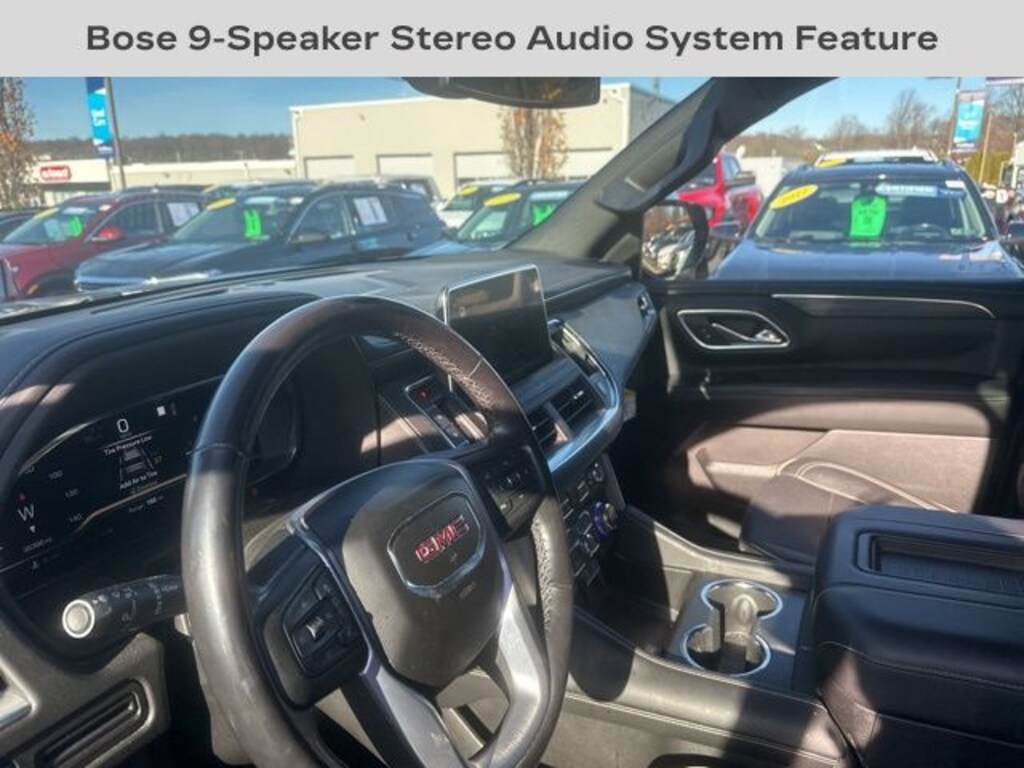 2022 GMC Yukon SLT EcoTec3 5.3L V8 10-Speed Automatic with Overdrive 4WD 4D Sport Utility Satin Steel Metallic 4WD, 2 Presets For Outside Rearview Mirrors, 2 Presets For Power Driver Seat, 3rd Row 60/40 Power-Folding Split-Bench Seat, Automatic Stop/Start, Bose 9-Speaker Stereo Audio System Feature, Bright Chrome Bodyside Moldings, Bright Front & Rear Door Sill Plates, Chrome Door Handles w/Body-Color Strip, Hands-Free Power Programmable Rear Liftgate, HD Surround Vision, Heated & Ventilated Driver & Front Passenger Seats, Heated 2nd Row Outboard Position Seats, Heated Driver & Front Passenger Seats, Heated Steering Wheel, Inside Rear-View Auto-Dimming Mirror, Max Trailering Package, Outside Heated Power-Adjustable Mirrors, Power Release 2nd Row 60/40 Split-Folding Bench Seat, Power Tilt & Telescopic Steering Column, Preferred Equipment Group 4SA, Rear Pedestrian Alert, Safety Alert Seat, SLT Luxury Package, Start/Stop System Disable Button, Universal Home Remote, Wireless Charging.