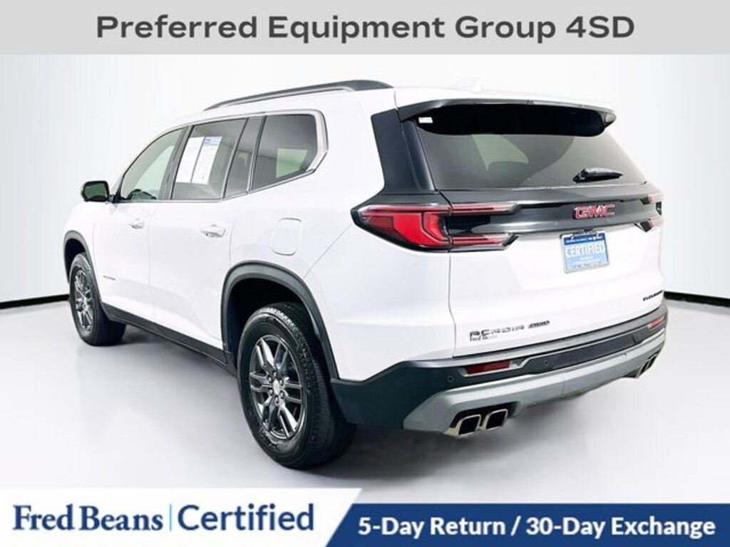 2025 GMC Acadia Elevation 2.5L DOHC 8-Speed Automatic AWD 4D Sport Utility Summit White Great Service History, Remainder of Factory Warranty, Factory Certified Vehicle, AWD, After Dark Cloth, Preferred Equipment Group 4SD.
