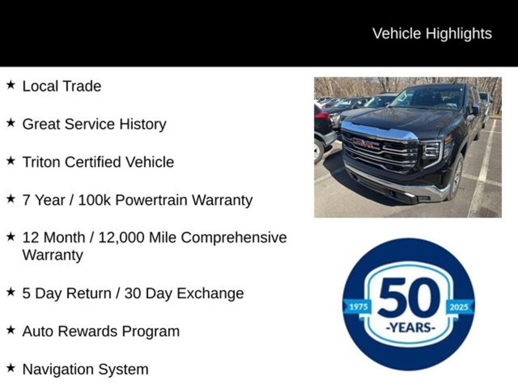 As a Triton Certified vehicle, this Sierra has undergone a rigorous inspection and comes with a comprehensive warranty to give you peace of mind. With its exceptional capabilities, advanced technology, and premium amenities, this 2025 GMC Sierra 1500 SLT is the perfect choice for those who demand the best.