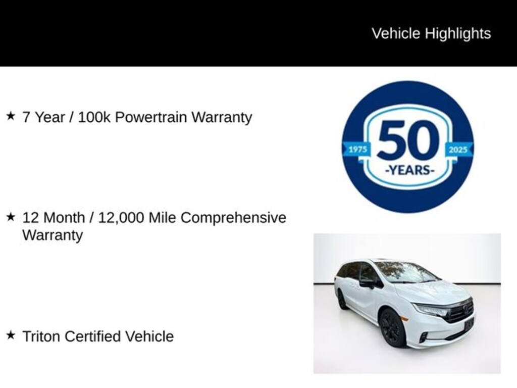 Recent Arrival! 2023 Honda Odyssey Sport 3.5L V6 SOHC i-VTEC 24V 10-Speed Automatic FWD 4D Passenger Van White 7 Year / 100k Powertrain Warranty, 12 Month / 12,000 Mile Comprehensive Warranty, Triton Certified Vehicle. 19/28 City/Highway MPG