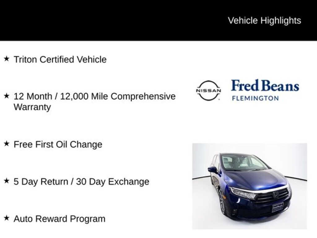 2023 Honda Odyssey EX-L EX-L 3.5L V6 SOHC i-VTEC 24V 10-Speed Automatic FWD 4D Passenger Van Obsidian Blue Pearl Triton Certified Vehicle, 12 Month / 12,000 Mile Comprehensive Warranty, Free First Oil Change, 5 Day Return / 30 Day Exchange, Auto Reward Program.