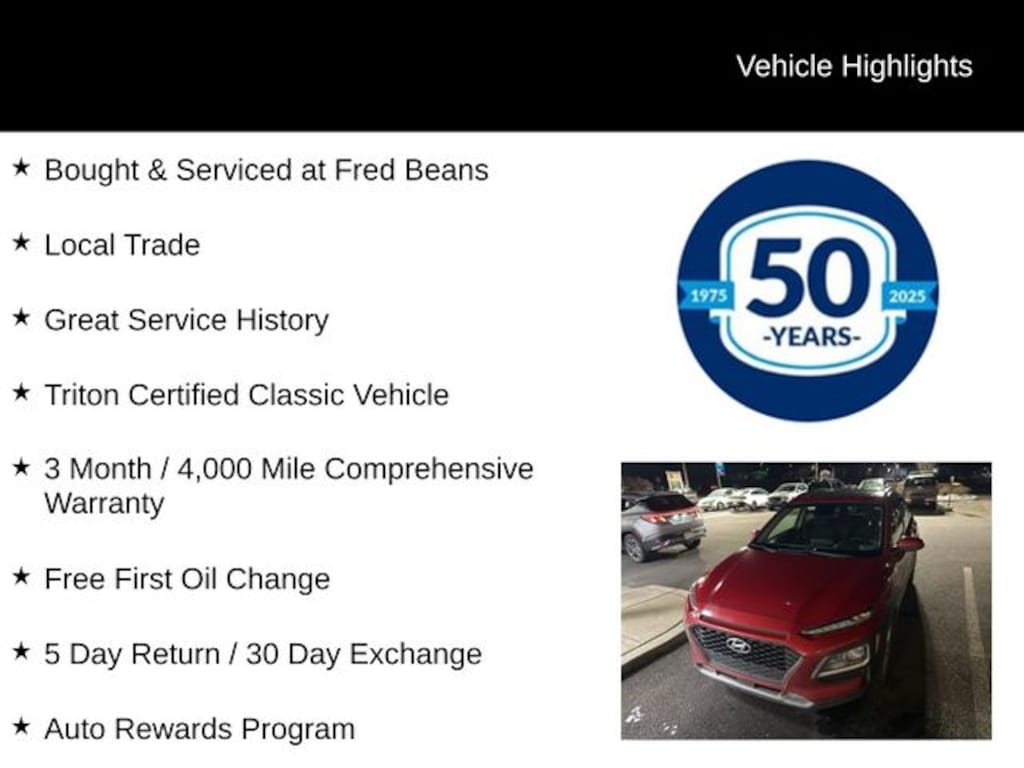 Recent Arrival! 2018 Hyundai Kona SEL SEL I4 6-Speed Automatic FWD 4D Sport Utility Pulse Red Bought & Serviced at Fred Beans, Local Trade, Great Service History, Triton Certified Classic Vehicle, 3 Month / 4,000 Mile Comprehensive Warranty, Free First Oil Change, 5 Day Return / 30 Day Exchange, Auto Rewards Program, 8-Way Power Driver Seat, Alloy wheels, Apple CarPlay & Android Auto, Cloth Seat Trim, Exterior Parking Camera Rear, Fully automatic headlights, Heated door mirrors, Heated front seats, Illuminated entry, Leather Shift Knob, Leather steering wheel, Option Group 02, Power door mirrors, Power Tilt & Slide Sunroof, Remote keyless entry, SEL Tech Package 02, Steering wheel mounted audio controls, Turn signal indicator mirrors.