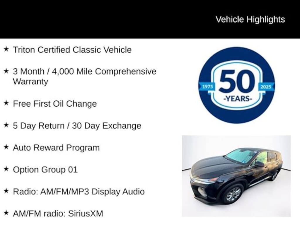 ***One Owner Clean Carfax*** Recent Arrival! 2020 Hyundai Santa Fe SEL 2.4L I4 DGI DOHC 16V LEV3-ULEV70 185hp 8-Speed Automatic with SHIFTRONIC AWD 4D Sport Utility Twilight Black Triton Certified Classic Vehicle, 3 Month / 4,000 Mile Comprehensive Warranty, Free First Oil Change, 5 Day Return / 30 Day Exchange, Auto Reward Program, AWD, Black/Black Cloth, AM/FM radio: SiriusXM, Apple CarPlay & Android Auto, Auto High-beam Headlights, Exterior Parking Camera Rear, Fully automatic headlights, Heated door mirrors, Heated Front Bucket Seats, Heated front seats, Option Group 01, Power door mirrors, Power driver seat, Radio: AM/FM/MP3 Display Audio, Remote keyless entry, Steering wheel mounted audio controls.