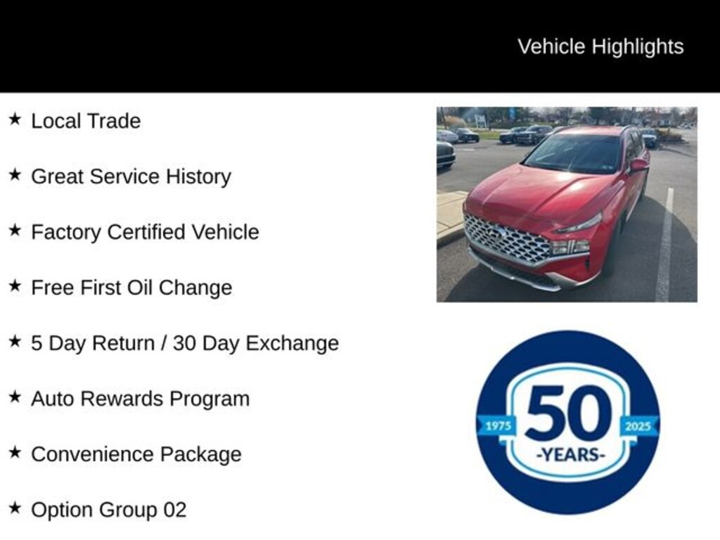 Recent Arrival! 2021 Hyundai Santa Fe SEL SEL 2.5L I4 8-Speed Automatic with SHIFTRONIC FWD 4D Sport Utility Calypso Red Local Trade, Great Service History, Factory Certified Vehicle, Free First Oil Change, 5 Day Return / 30 Day Exchange, Auto Rewards Program, Black Cloth, 12.3" LCD Instrument Cluster, 18" x 7.5J Alloy Wheels, AM/FM radio: SiriusXM, Apple CarPlay & Android Auto, Auto High-beam Headlights, Convenience Package, Dual Automatic Temperature Control, Exterior Parking Camera Rear, Fully automatic headlights, Heated door mirrors, Heated front seats, Illuminated entry, Leather Wrapped Steering Wheel, Manual Rear Side Sunshades, Option Group 02, Power door mirrors, Power driver seat, Remote keyless entry, Side Mirrors w/Turn Signal Indicators, Steering wheel mounted audio controls, YES Essentials Stain-Resistant Cloth Seat Trim.