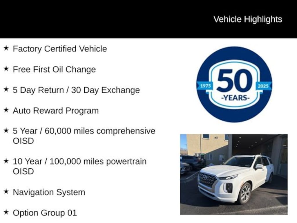Discover the ultimate family-friendly SUV with the 2022 Hyundai Palisade Limited. This meticulously maintained, Hyundai Certified Used Vehicle offers unparalleled comfort, advanced technology, and exceptional performance, making it the perfect choice for your next adventure.