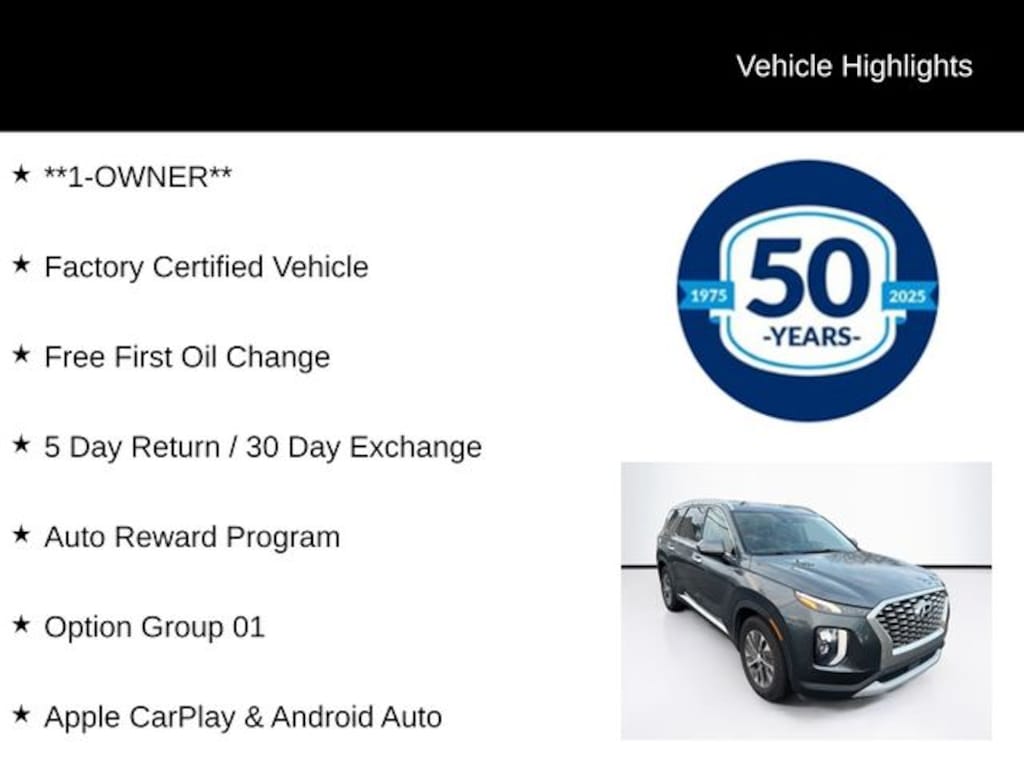 **1-OWNER**, Factory Certified Vehicle, Free First Oil Change, 5 Day Return / 30 Day Exchange, Auto Reward Program, Apple CarPlay & Android Auto, Option Group 01, 3.648 Axle Ratio, 3rd row seats: split-bench, 4-Wheel Disc Brakes, 6 Speakers, ABS brakes, Air Conditioning, Alloy wheels, AM/FM radio, Auto High-beam Headlights, Auto-dimming Rear-View mirror, Automatic temperature control, Brake assist, Bumpers: body-color, Cargo Cover/Screen, Cargo Net, Cargo Tray, Carpeted Floor Mats, Cloth Seat Trim, Delay-off headlights, Driver door bin, Driver vanity mirror, Dual front impact airbags, Dual front side impact airbags, Electronic Stability Control, Four wheel independent suspension, Front anti-roll bar, Front Bucket Seats, Front Center Armrest, Front dual zone A/C, Front reading lights, Fully automatic headlights, Garage door transmitter: HomeLink, Heated door mirrors, Heated Front Bucket Seats, Heated front seats, Illuminated entry, Knee airbag, Low tire pressure warning, Mudguards, Occupant sensing airbag, Outside temperature display, Overhead airbag, Overhead console, Panic alarm, Passenger door bin, Passenger vanity mirror, Power door mirrors, Power driver seat, Power moonroof, Power steering, Power windows, Radio data system, Radio: AM/FM/MP3 Display Audio, Rear air conditioning, Rear anti-roll bar, Rear audio controls, Rear reading lights, Rear window defroster, Rear window wiper, Reclining 3rd row seat, Remote keyless entry, Security system, Speed control, Speed-sensing steering, Split folding rear seat, Spoiler, Steering wheel mounted audio controls, Tachometer, Telescoping steering wheel, Tilt steering wheel, Traction control, Trip computer, Turn signal indicator mirrors, Variably intermittent wipers, Wheels: 18" x 7.5J Machine Finish Alloy, Apple CarPlay & Android Auto, Option Group 01.