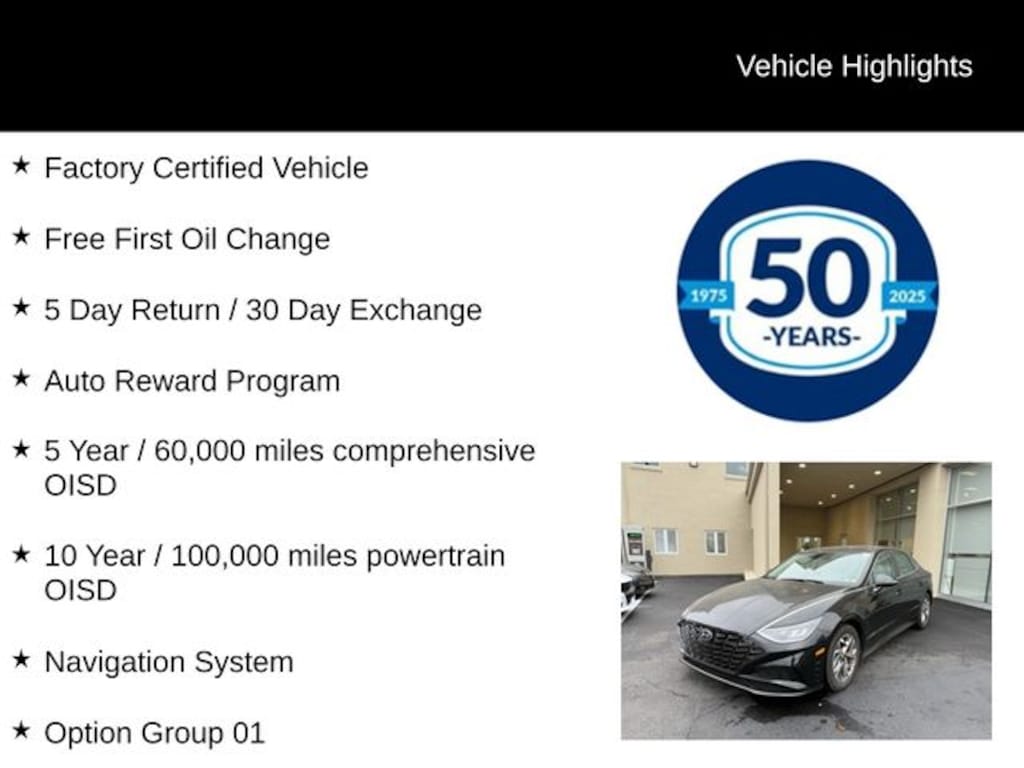 Recent Arrival! 2023 Hyundai Sonata SEL 2.5L I4 8-Speed Automatic with SHIFTRONIC FWD 4D Sedan Onyx Black Factory Certified Vehicle, Free First Oil Change, 5 Day Return / 30 Day Exchange, Auto Reward Program, 5 Year / 60,000 miles comprehensive OISD, 10 Year / 100,000 miles powertrain OISD, Dark Gray Cloth, ABS brakes, Apple CarPlay & Android Auto, Brake assist, Electronic Stability Control, Emergency communication system: Blue Link Connected Car Service (3-year complimentary subscription), Exterior Parking Camera Rear, Front dual zone A/C, Heated Front Bucket Seats, Navigation System, Option Group 01, Power driver seat, Power steering, Power windows, Rear anti-roll bar, Remote keyless entry, Steering wheel mounted audio controls.