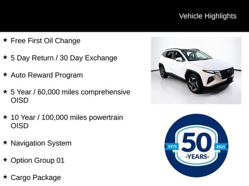 For added peace of mind, this Tucson Limited is backed by Hyundai's comprehensive certification program. Featuring a 173+ Point Inspection, Roadside Assistance, and a Limited Warranty of 60 Months/60,000 Miles, you can drive with confidence knowing your investment is protected.