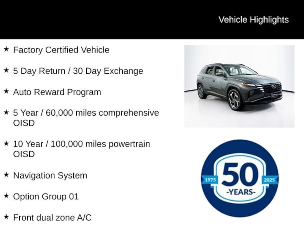 Experience the exceptional value and peace of mind that comes with owning a Hyundai Certified Pre-Owned vehicle. Visit our showroom today and let us help you find the perfect Tucson Hybrid to meet your needs.