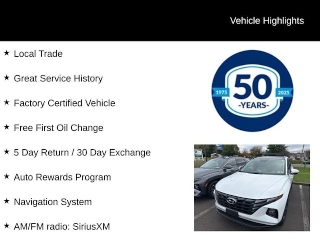 Recent Arrival! 2024 Hyundai Tucson Hybrid SEL Convenience SEL Convenience I4 6-Speed Automatic AWD 4D Sport Utility White Pearl Local Trade, Great Service History, Factory Certified Vehicle, Free First Oil Change, 5 Day Return / 30 Day Exchange, Auto Rewards Program, I4, AM/FM radio: SiriusXM, Apple CarPlay & Android Auto, Auto High-beam Headlights, Exterior Parking Camera Rear, Front dual zone A/C, H-Tex Seat Trim, Heated door mirrors, Heated front seats, Illuminated entry, Navigation System, Power door mirrors, Power driver seat, Power Liftgate, Power moonroof, Remote keyless entry, Steering wheel mounted audio controls, Turn signal indicator mirrors, Wheels: 19" x 7.5J" Machine-Face Finish Alloy.