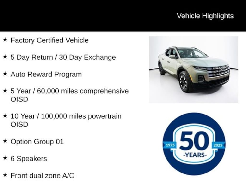 As a Hyundai Certified Used Vehicle, this 2025 Santa Cruz SEL has undergone a rigorous 173+ point inspection and is backed by an extensive warranty and roadside assistance program. You can drive with confidence, knowing that your investment is protected by Hyundai's commitment to quality and customer satisfaction.