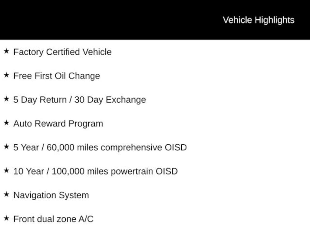 • Factory Certified Vehicle