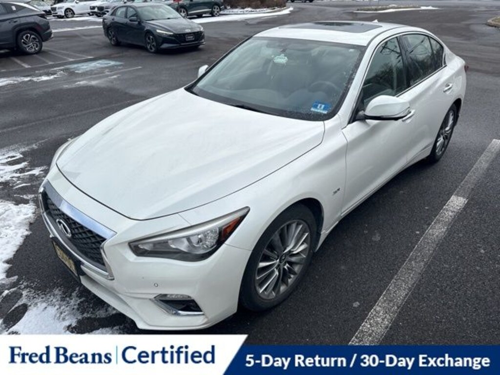 Recent Arrival! 2018 INFINITI Q50 3.0t LUXE 3.0t LUXE 3.0L V6 7-Speed Automatic with Manual Shift AWD 4D Sedan Majestic White Local Trade, Great Service History, Triton Certified Classic Vehicle, 3 Month / 4,000 Mile Comprehensive Warranty, Free First Oil Change, 5 Day Return / 30 Day Exchange, Auto Rewards Program, 60/40 Split-Folding Rear Seats, All Weather Package (L93), All-Season Floor Mats, Alloy wheels, AM/FM radio: SiriusXM, Around View Monitor w/Moving Object Detection, Back-Up Collision Intervention, Blind Spot Warning, Driver Seat Power Lumbar, Essential Package (3.0t LUXE), Forward Emergency Braking, Front & Rear Parking Sensors, Front dual zone A/C, Fully automatic headlights, Heated door mirrors, Heated Front Seats, Heated Steering Wheel, INFINITI InTouch Navigation System, Leather Shift Knob, Leather steering wheel, Leatherette Seating Surfaces, Power door mirrors, Power moonroof, Power passenger seat, Predictive Forward Collision Warning (PFCW), ProASSIST Package, Rain sensing wipers, Remote Engine Start, Steering wheel mounted audio controls, Trunk Protector, Turn signal indicator mirrors.