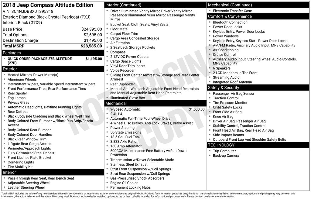 As a Triton Certified Classic Vehicle, this 2018 Jeep Compass Altitude has undergone a rigorous inspection and comes with a comprehensive warranty, giving you peace of mind and confidence in your purchase.
