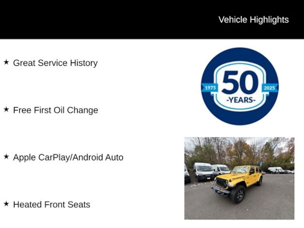 Recent Arrival! 2021 Jeep Wrangler Unlimited Rubicon 2.0L I4 DOHC 8-Speed Automatic 4WD 4D Sport Utility Baja Yellow Clearcoat Great Service History, Free First Oil Change, Apple CarPlay/Android Auto, Heated Front Seats.