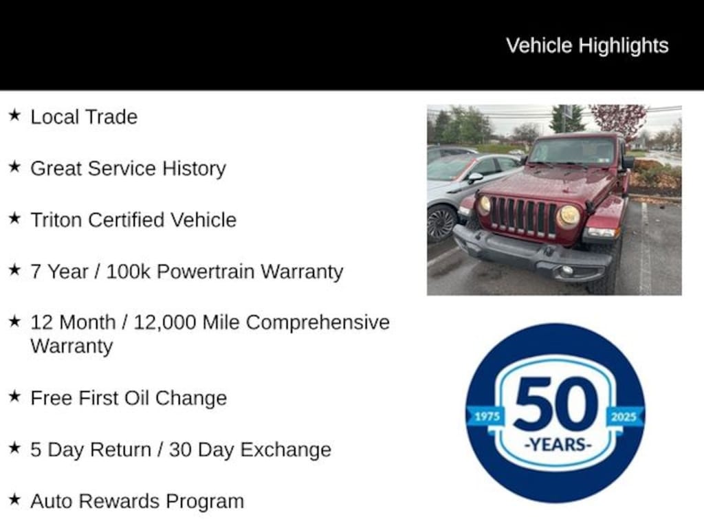 Recent Arrival! 2021 Jeep Wrangler Unlimited Sport S Unlimited Sport S 2.0L I4 DOHC 8-Speed Automatic 4WD 4D Sport Utility Snazzberry Pearlcoat Local Trade, Great Service History, Triton Certified Vehicle, 7 Year / 100k Powertrain Warranty, 12 Month / 12,000 Mile Comprehensive Warranty, Free First Oil Change, 5 Day Return / 30 Day Exchange, Auto Rewards Program, 7.0" Touchscreen Display, 8.4" Radio & Premium Audio Group (DISC), ABS brakes, Air Conditioning w/Auto Temperature Control, Air Filtering, Alpine Premium Audio System, Annodized Gunmetal I/P Bezels, Apple CarPlay, Automatic Headlamps, Berber Floor Mats w/80th Anniversary Tag, Body Color Fender Flares, Body Color/Accent Color Grille, Cloth Bucket Seats w/80th Anniversary Tag (DISC), Cluster 7.0" TFT Color Display, Cold Weather Group, Compass, Convenience Group, Daytime Running Lamp System, Electronic Stability Control, Front 1-Touch Down Power Windows, Google Android Auto, GPS Antenna Input, Gray/Black Jeep Badges, Gray/Black Trail Rated Badge, Heated Front Seats, Heated Steering Wheel, Heavy Duty Suspension w/Gas Shocks, Integrated Center Stack Radio, Jeep 80th Anniversary Badges, Jeep 80th Anniversary Console Badge, Jeep 80th Swing Gate Plaque, Leather Wrapped Steering Wheel, Light Tungsten Interior Accents, Low tire pressure warning, Mold In Color Bumper w/Neutral Gray, ParkView Rear Back-Up Camera, Power Heated Mirrors, Quick Order Package 22Q 80th Edition (DISC), Radio: Uconnect 4 w/7" Display, Radio: Uconnect 4C Nav w/8.4" Display (DISC), Remote Keyless Entry, Security Alarm, SiriusXM Satellite Radio, Speed Sensitive Power Locks, Sun Visors w/Illuminated Vanity Mirrors, Technology Group, Technology Group (DISC), Traction control, Universal Garage Door Opener, USB Host Flip, Wheels: 18" x 7.5" Granite Crystal Aluminum (DISC).