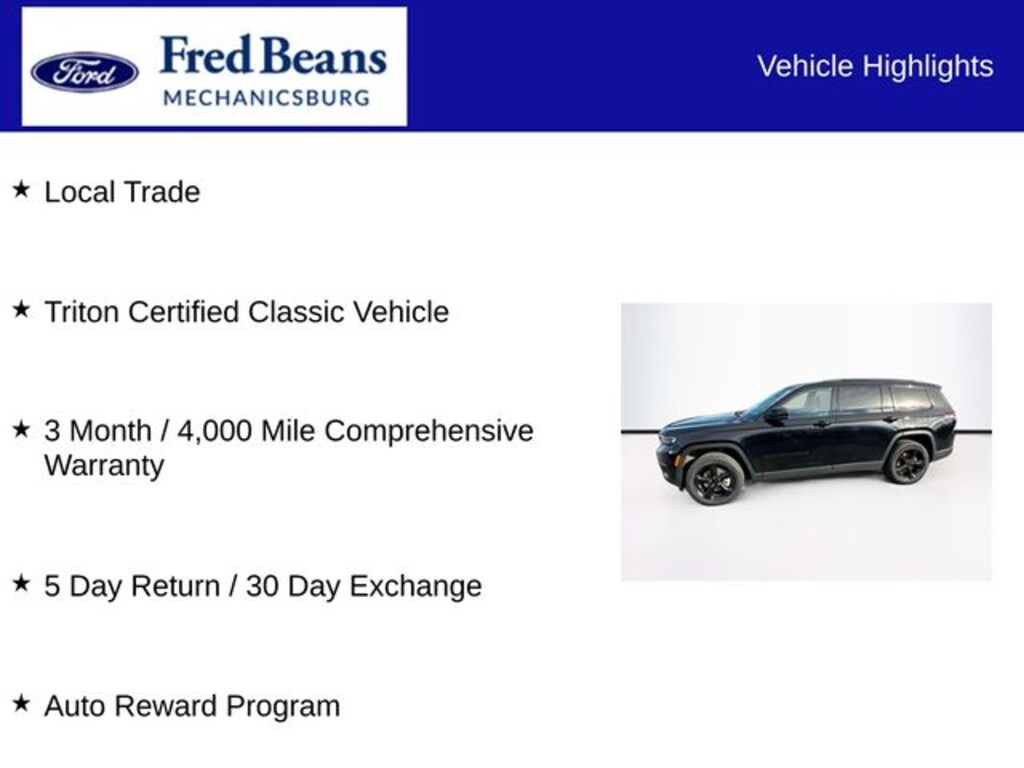 As a Triton Certified Classic Vehicle, this Grand Cherokee L has undergone a rigorous 127-point inspection to ensure it meets our high standards for quality and reliability. You can drive with confidence, knowing that this SUV has been meticulously maintained and comes with a comprehensive 3-month/4,000-mile warranty for your peace of mind.