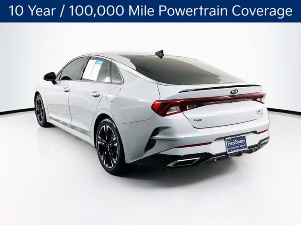 As a Kia Certified Pre-Owned vehicle, this K5 has undergone a rigorous 165-point inspection and comes with a comprehensive warranty package, including a 12-month/12,000-mile "Platinum Coverage" plan and a 120-month/100,000-mile powertrain warranty. Roadside assistance, rental car reimbursement, and a 3-month SiriusXM trial subscription are also included.