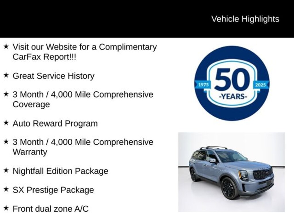 This Kia Telluride is a Triton Certified Classic Vehicle, meaning it has undergone a rigorous inspection and comes with a 5 Day Return / 30 Day Exchange policy, giving you the peace of mind you deserve. Additionally, you'll receive a complimentary CARFAX report, ensuring you have all the information you need to make an informed decision.
