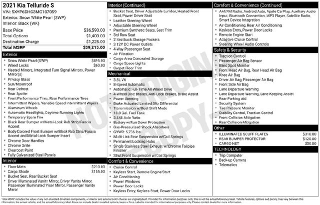 Recent Arrival! 2021 Kia Telluride S 3.8L V6 DGI DOHC Dual CVVT 8-Speed Automatic AWD 4D Sport Utility Snow White Pearl 12 Month / 12,000 Mile Comprehensive Warranty.