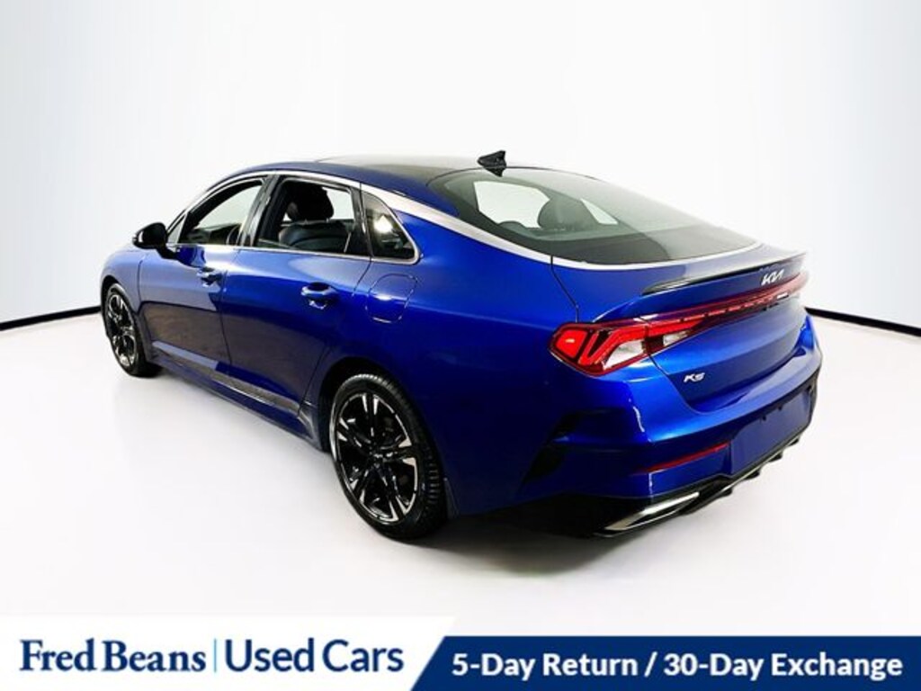 2022 Kia K5 GT-Line I4 8-Speed Automatic FWD 4D Sedan Sapphire Blue Kia Certified Pre-Owned Certified, 4-Wheel Disc Brakes, 6 Speakers, ABS brakes, Air Conditioning, Alloy wheels, AM/FM radio: SiriusXM, Apple CarPlay & Android Auto, Auto High-beam Headlights, Automatic temperature control, Brake assist, Bumpers: body-color, Cloth/Leatherette Seat Trim, Delay-off headlights, Driver door bin, Driver vanity mirror, Dual front impact airbags, Dual front side impact airbags, Electronic Stability Control, Forward Collision Avoidance-Assist - Cyclist, Forward Collision Avoidance-Assist - Junction Turn, Four wheel independent suspension, Front anti-roll bar, Front Bucket Seats, Front Center Armrest, Front dual zone A/C, Front fog lights, Front reading lights, Fully automatic headlights, Gloss Black Pillar & Door Frame Cover, GT-Line FWD Premium Package, Heated door mirrors, Highway Driving Assist, Illuminated entry, Interior Light Kit, Knee airbag, Low tire pressure warning, Navigation System, Occupant sensing airbag, Outside temperature display, Overhead airbag, Overhead console, Panic alarm, Passenger door bin, Passenger vanity mirror, Power door mirrors, Power driver seat, Power steering, Power windows, Radio data system, Radio: AM/FM/MP3 Audio System, Rear anti-roll bar, Rear seat center armrest, Rear side impact airbag, Rear window defroster, Remote keyless entry, Security system, Speed control, Speed-sensing steering, Split folding rear seat, Spoiler, Sport steering wheel, Steering wheel mounted audio controls, Tachometer, Telescoping steering wheel, Tilt steering wheel, Traction control, Trip computer, Turn signal indicator mirrors, Variably intermittent wipers, Wheels: 7.5J x 18" Gloss Black Machined Finish Alloy.