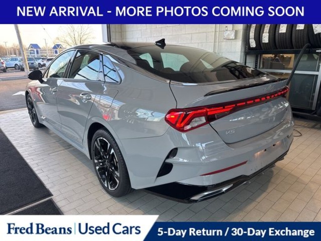 Recent Arrival! 2023 Kia K5 GT-Line 1.6L I4 DGI Turbocharged DOHC 16V LEV3-ULEV70 180hp 8-Speed Automatic FWD 4D Sedan Wolf Gray Kia Certified Pre-Owned Certified, 4-Wheel Disc Brakes, 6 Speakers, ABS brakes, Air Conditioning, Alloy wheels, AM/FM radio: SiriusXM, Apple CarPlay & Android Auto, Auto High-beam Headlights, Automatic temperature control, Brake assist, Bumpers: body-color, Cloth/SynTex Seat Trim, Delay-off headlights, Driver door bin, Driver vanity mirror, Dual front impact airbags, Dual front side impact airbags, Electronic Stability Control, Forward Collision Avoidance-Assist, Four wheel independent suspension, Front anti-roll bar, Front Bucket Seats, Front Center Armrest, Front dual zone A/C, Front fog lights, Front reading lights, Fully automatic headlights, Gloss Black Trim, GT-Line Panoramic Sunroof Package, GT-Line Premium Package, GT-Line Red Interior Package, Heated door mirrors, Highway Driving Assist, Illuminated entry, Knee airbag, LED Interior Lighting, LED Projection Headlamps, Low tire pressure warning, Navigation System, Occupant sensing airbag, Outside temperature display, Overhead airbag, Overhead console, Panic alarm, Panoramic Sunroof, Passenger door bin, Passenger vanity mirror, Power door mirrors, Power driver seat, Power steering, Power windows, Radio data system, Radio: AM/FM/MP3 Audio System, Rear anti-roll bar, Rear seat center armrest, Rear side impact airbag, Rear window defroster, Remote keyless entry, Security system, Smart Cruise Control w/Stop & Go, Speed control, Speed-sensing steering, Split folding rear seat, Spoiler, Sport steering wheel, Steering wheel mounted audio controls, Tachometer, Telescoping steering wheel, Tilt steering wheel, Traction control, Trip computer, Turn signal indicator mirrors, Variably intermittent wipers, Wheel Locks, Wheels: 18" Gloss Black Machined Finish Alloy.