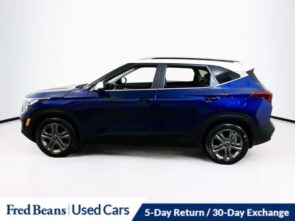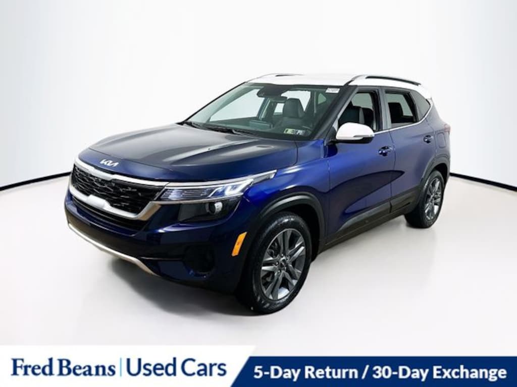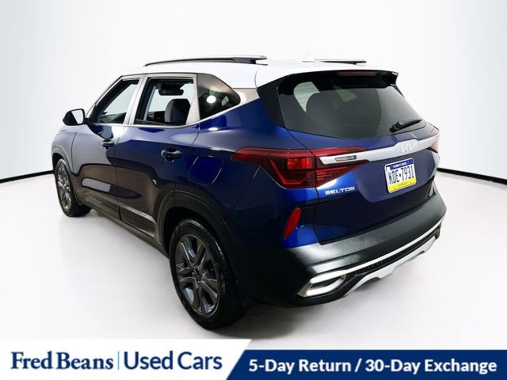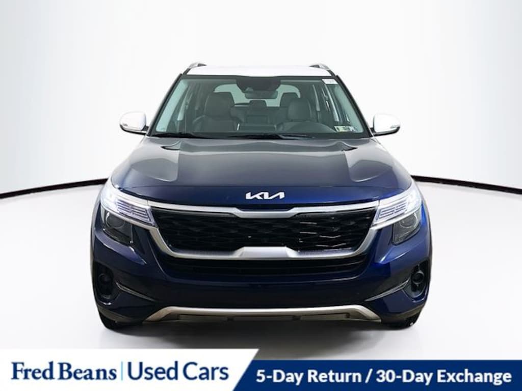 Recent Arrival! 2023 Kia Seltos S 2.0L I4 MPI CVT FWD 4D Sport Utility Dark Ocean Blue/White Roof Kia Certified Pre-Owned Certified, 4-Wheel Disc Brakes, 6 Speakers, 6.052 Axle Ratio, ABS brakes, Air Conditioning, Alloy wheels, AM/FM radio, Apple CarPlay & Android Auto, Auto High-beam Headlights, Automatic temperature control, Brake assist, Bumpers: body-color, Cargo Net (Floor), Cargo Tray, Carpet Floor Mats, Cloth & Sofino Premium Leatherette Seat Trim, Delay-off headlights, Driver door bin, Driver vanity mirror, Dual front impact airbags, Dual front side impact airbags, Electronic Stability Control, Emergency communication system: 911 Connect, Exterior Parking Camera Rear, Front anti-roll bar, Front Bucket Seats, Front Center Armrest, Front fog lights, Front reading lights, Front wheel independent suspension, Fully automatic headlights, Glossy Black Door Garnish, Glossy Black Door Garnish Package, Heated door mirrors, Illuminated entry, Leather Shift Knob, Low tire pressure warning, Mud Guards, Navigation Package, Occupant sensing airbag, Outside temperature display, Overhead airbag, Overhead console, Panic alarm, Passenger door bin, Passenger vanity mirror, Power door mirrors, Power steering, Power windows, Radio: AM/FM/MP3 Display Audio, Radio: AM/FM/MP3 Display Audio w/Navigation, Rear seat center armrest, Rear window defroster, Rear window wiper, Remote keyless entry, Security system, Speed control, Speed-sensing steering, Split folding rear seat, Spoiler, Steering wheel mounted audio controls, Tachometer, Telescoping steering wheel, Tilt steering wheel, Traction control, Trip computer, Turn signal indicator mirrors, Variably intermittent wipers, Wheels: 17" Alloy w/Dark Gray Finish.