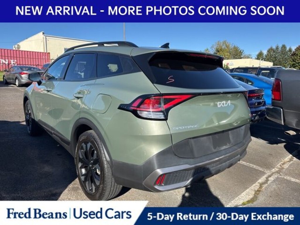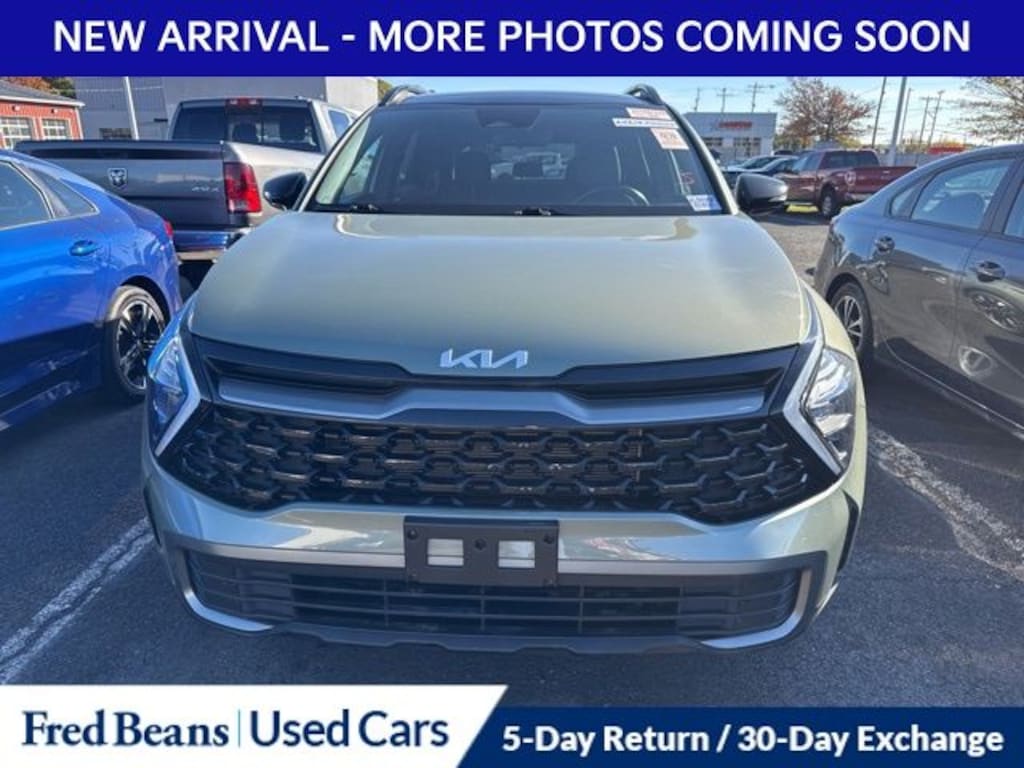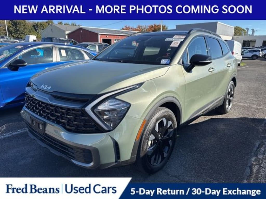 Recent Arrival! 2023 Kia Sportage X-Line I4 8-Speed Automatic AWD 4D Sport Utility Jungle Green Kia Certified Pre-Owned Certified, AWD, 4-Wheel Disc Brakes, 6 Speakers, ABS brakes, Air Conditioning, Alloy wheels, AM/FM radio: SiriusXM, Apple CarPlay & Android Auto, Auto High-beam Headlights, Automatic temperature control, Axle Ratio: 3.648, Brake assist, Bumpers: body-color, Carpet Floor Mats X-Line, Compass, Delay-off headlights, Driver door bin, Driver vanity mirror, Dual front impact airbags, Dual front side impact airbags, Electronic Stability Control, Emergency communication system, Four wheel independent suspension, Front anti-roll bar, Front Bucket Seats, Front Center Armrest, Front dual zone A/C, Fully automatic headlights, harman/kardon® Speakers, Heated door mirrors, Heated Front Bucket Seats, Heated front seats, Illuminated entry, Interior Lighting, Leather Shift Knob, Leather steering wheel, LED Interior Lighting, Low tire pressure warning, Navigation System, Occupant sensing airbag, Outside temperature display, Overhead airbag, Overhead console, Panic alarm, Panoramic Sunroof, Passenger door bin, Passenger vanity mirror, Power door mirrors, Power driver seat, Power steering, Power windows, Premium Leatherette Seat Trim, Radio: AM/FM/HD Audio System, Rain sensing wipers, Rear anti-roll bar, Rear seat center armrest, Rear window defroster, Rear window wiper, Remote keyless entry, Security system, Smart Power Liftgate, Speed control, Speed-sensing steering, Split folding rear seat, Spoiler, Steering wheel mounted audio controls, Tachometer, Telescoping steering wheel, Tilt steering wheel, Traction control, Trip computer, Turn signal indicator mirrors, Variably intermittent wipers, Wheels: 19" Gloss Black Alloy, X-Line Premium Package, AWD.