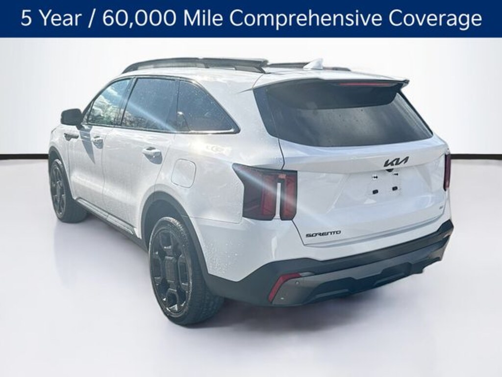 2025 Kia Sorento X-Line EX 2.5L I4 DGI Turbocharged DOHC 16V LEV3-SULEV30 281hp 8 Speed Dual Clutch AWD 4D Sport Utility Glacial White Pearl 20/27 City/Highway MPG 20/27 City/Highway MPG Visit our Website for a Complimentary CarFax Report!!!, Great Service History, KIA Certified Pre-Owned, 10 Year / 100,000 Mile Powertrain Coverage, 5 Year / 60,000 Mile Comprehensive Coverage, 12 Month / 12,000 Mile Platinum Coverage, 10 Year Unlimited Mile Roadside Assistance, Free First Oil Change, Auto Reward Program, AWD, 3rd row seats: split-bench, Apple CarPlay & Android Auto, Auto High-beam Headlights, Automatic temperature control, Exterior Parking Camera Rear, Front dual zone A/C, Front fog lights, Fully automatic headlights, Heated front seats, Leather steering wheel, Navigation System, Power driver seat, Power Liftgate, Power moonroof, Power passenger seat, Remote keyless entry, SynTex Artificial Leather Seat Trim, 4-Wheel Disc Brakes, 6 Speakers, ABS brakes, Air Conditioning, Alloy wheels, AM/FM radio: SiriusXM, Auto-Dimming Mirror w/HomeLink (PnP), Auto-dimming Rear-View mirror, Brake assist, Bumpers: body-color, Carpeted Floor Mats, Delay-off headlights, Driver door bin, Driver vanity mirror, Dual front impact airbags, Dual front side impact airbags, Electronic Stability Control, Emergency communication system: 911 Connect, Four wheel independent suspension, Front anti-roll bar, Front Bucket Seats, Front Center Armrest, Front reading lights, Heated door mirrors, Heated Front Bucket Seats, Illuminated entry, Knee airbag, Leather Shift Knob, Low tire pressure warning, Occupant sensing airbag, Outside temperature display, Overhead airbag, Overhead console, Panic alarm, Passenger door bin, Passenger vanity mirror, Power door mirrors, Power steering, Power windows, Radio data system, Radio: AM/FM Standard Sound System, Rear anti-roll bar, Rear reading lights, Rear side impact airbag, Rear window defroster, Rear window wiper, Security system, Speed control, Speed-sensing steering, Split folding rear seat, Spoiler, Steering wheel mounted audio controls, Tachometer, Telescoping steering wheel, Tilt steering wheel, Traction control, Trip computer, Turn signal indicator mirrors, Variably intermittent wipers, Wheels: 20" Gloss Black X-Line Alloy, AWD, 3rd row seats: split-bench, Apple CarPlay & Android Auto, Auto High-beam Headlights, Automatic temperature control, Exterior Parking Camera Rear, Front dual zone A/C, Front fog lights, Fully automatic headlights, Heated front seats, Leather steering wheel, Navigation System, Power driver seat, Power Liftgate, Power moonroof, Power passenger seat, Remote keyless entry, SynTex Artificial Leather Seat Trim.