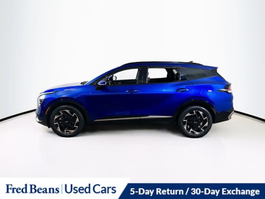 2025 Kia Sportage SX-Prestige I4 8-Speed Automatic FWD 4D Sport Utility Sapphire Blue Kia Certified Pre-Owned Certified, 4-Wheel Disc Brakes, 8 Speakers, ABS brakes, Air Conditioning, Alloy wheels, AM/FM radio: SiriusXM, Apple CarPlay & Android Auto, Auto High-beam Headlights, Automatic temperature control, Brake assist, Bumpers: body-color, Carpeted Floor Mats, Compass, Delay-off headlights, Driver door bin, Driver vanity mirror, Dual front impact airbags, Dual front side impact airbags, Electronic Stability Control, Emergency communication system, Four wheel independent suspension, Front anti-roll bar, Front Bucket Seats, Front Center Armrest, Front dual zone A/C, Front fog lights, Front reading lights, Fully automatic headlights, harman/kardon® Speakers, Heated & Ventilated Front Bucket Seats, Heated door mirrors, Heated front seats, Heated steering wheel, Illuminated entry, Leather Shift Knob, Leather steering wheel, Low tire pressure warning, Memory seat, Navigation System, Occupant sensing airbag, Outside temperature display, Overhead airbag, Overhead console, Panic alarm, Passenger door bin, Passenger vanity mirror, Power door mirrors, Power driver seat, Power Liftgate, Power moonroof, Power passenger seat, Power steering, Power windows, Premium Leatherette Seat Trim, Radio: AM/FM/HD Premium Audio System, Rain sensing wipers, Rear anti-roll bar, Rear reading lights, Rear seat center armrest, Rear side impact airbag, Rear window defroster, Rear window wiper, Remote keyless entry, Security system, Speed control, Speed-sensing steering, Split folding rear seat, Spoiler, Steering wheel mounted audio controls, Tachometer, Telescoping steering wheel, Tilt steering wheel, Traction control, Trip computer, Turn signal indicator mirrors, Variably intermittent wipers, Ventilated front seats, Wheels: 19" x 7.5J Gloss Black Alloy.